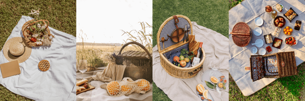 Gather all the picnic essentials and create a cozy picnic setting: