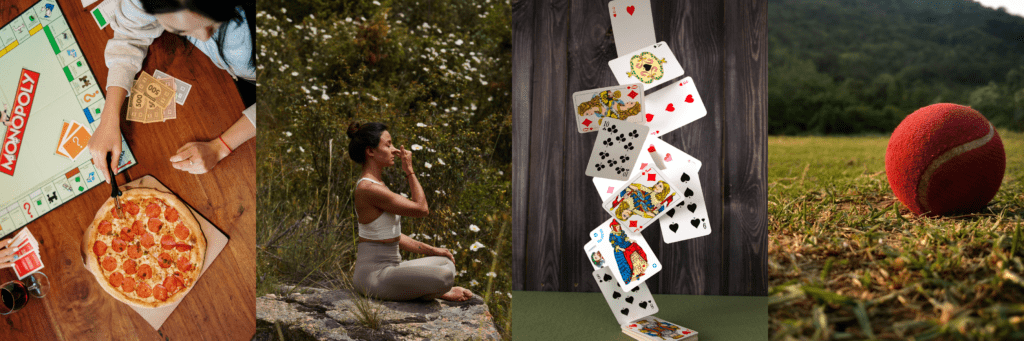 - Board games: 30 second, Cluedo, Scrabble, Pictionary, Heads Up, or a deck of cards.
